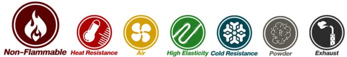 ใช้งานในอุตสาหกรรมเครื่องจักรกล,อากาศยาน,งานก่อสร้าง ใช้กับงานระบบดูด, ลำเลียง ,ส่งลม ,ระบายกลิ่น,ควันเคมี แก๊ซ เพื่องานในโรงงานอุตสาหกรรมที่ต้องทำงานกับอุณหภูมิสูงสามารถใช้งานที่มีอุณหภูมิสูงได้อย่างต่อเนื่อง
